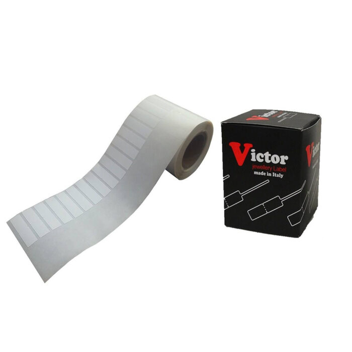 لیبل طلا و جواهر ایتالیایی «Victor» لیبلی با کاررایی بالا است از این محصول جهت درج مشخصات جواهر مانند عیار، وزن، قیمت و غیره … استفاده می شود جنس این محصول از نوع PVC و ضد آب می باشد، این لیبل که به لیبل دم موشی نیز معروف است توسط شرکت ویکتور ایتالیا تولید می شود که یکی از با کیفیت ترین لیبل های موجود در بازار می باشد. از مشخصه های بارز این محصول مقاومت در برابر کشیدگی، چسبندگی قوی، کیفیت چاپ و ماندگاری چاپ بسیار بالا است. این لیبل از ابعاد (73*10*42) میلیمتر برخوردار است و طول قسمت شیشه اییا همان دم موشی 31 میلیمتر می باشد.